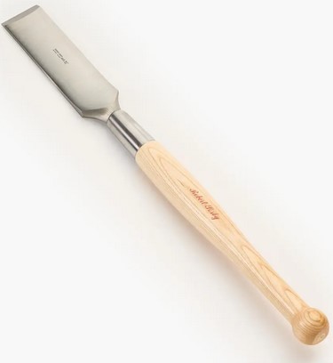 Commonly used in both log building and timber framing, these hefty slicks provide the mass necessary for smooth, controlled cuts on large- scale joinery work and are well balanced for their size. Forged as one piece, the high-carbon steel blades have a hollow-ground bevel to facilitate honing, with the top face rounded for comfortable use. The arrises along the lands have been lightly eased for safer handling. The blades are fixed in the ash handles with a large tang that has a steel ferrule to reinforce the joint. Contoured for a comfortable grip, each handle has a knob at the tip for a snug fit against a shoulder or in the crook of an arm. An upsweep from blade to handle allows additional clearance for working in deep mortises or for long paring cuts.